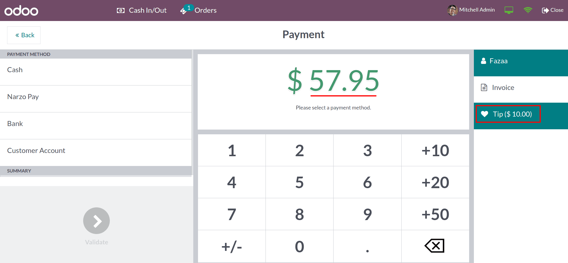 Now let’s open the PoS session and check how the customer tips are managed in Odoo 16 POS.