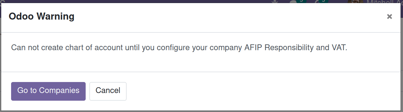 msg = _('Can not create chart of account until you configure your company AFIP Responsibility and VAT.')