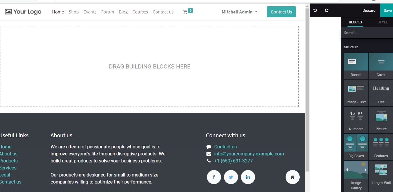 Odoo 14 is a comprehensive solution for all your website related worries. This open-source ERP solution helps to design catchy websites within the shortest time. A website builder that was first introduced in the Odoo 13 version. Odoo has given special focus to website building in Odoo 14 also and have introduced a set of new features including count down snippets and other features. This website builder support is sure to help the business attract more customers. Odoo web builder eases the inclusion of blogs and allows social media connections in the websites.