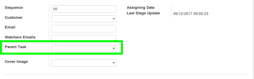 On activating the subtask feature, you can find an option parent task in the task form, this is how we can create a subtask for a task.