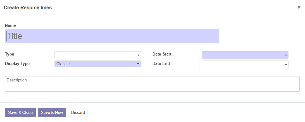 and skills. Before creating a resume entry, you have to create Resume Line Types.