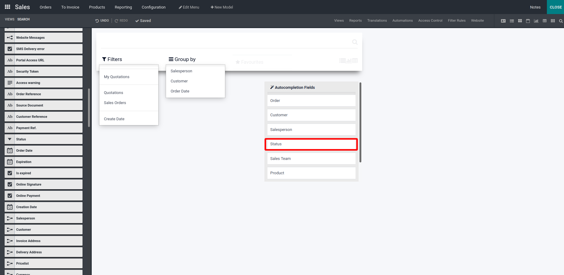 Here we have dragged and dropped the status field as you can see above.