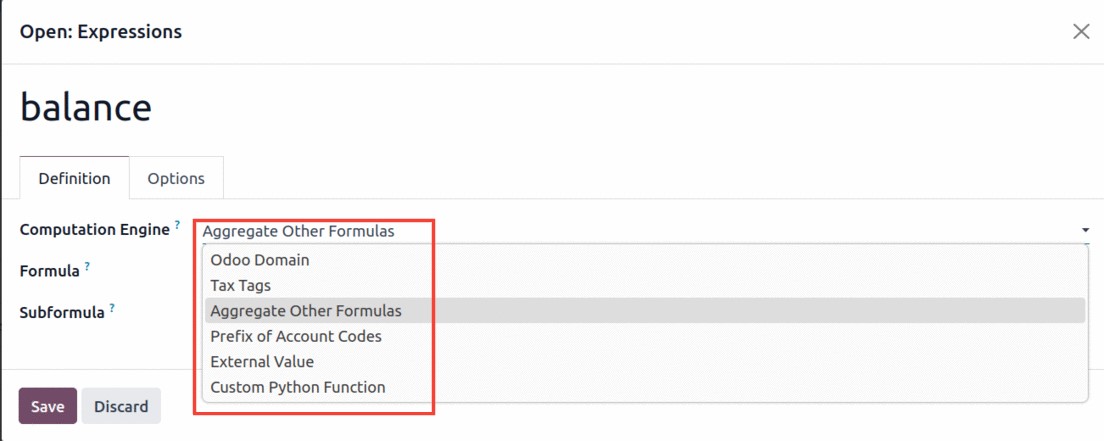 You can define the computing engine, the formula, and the sub-formula after adding the expression on