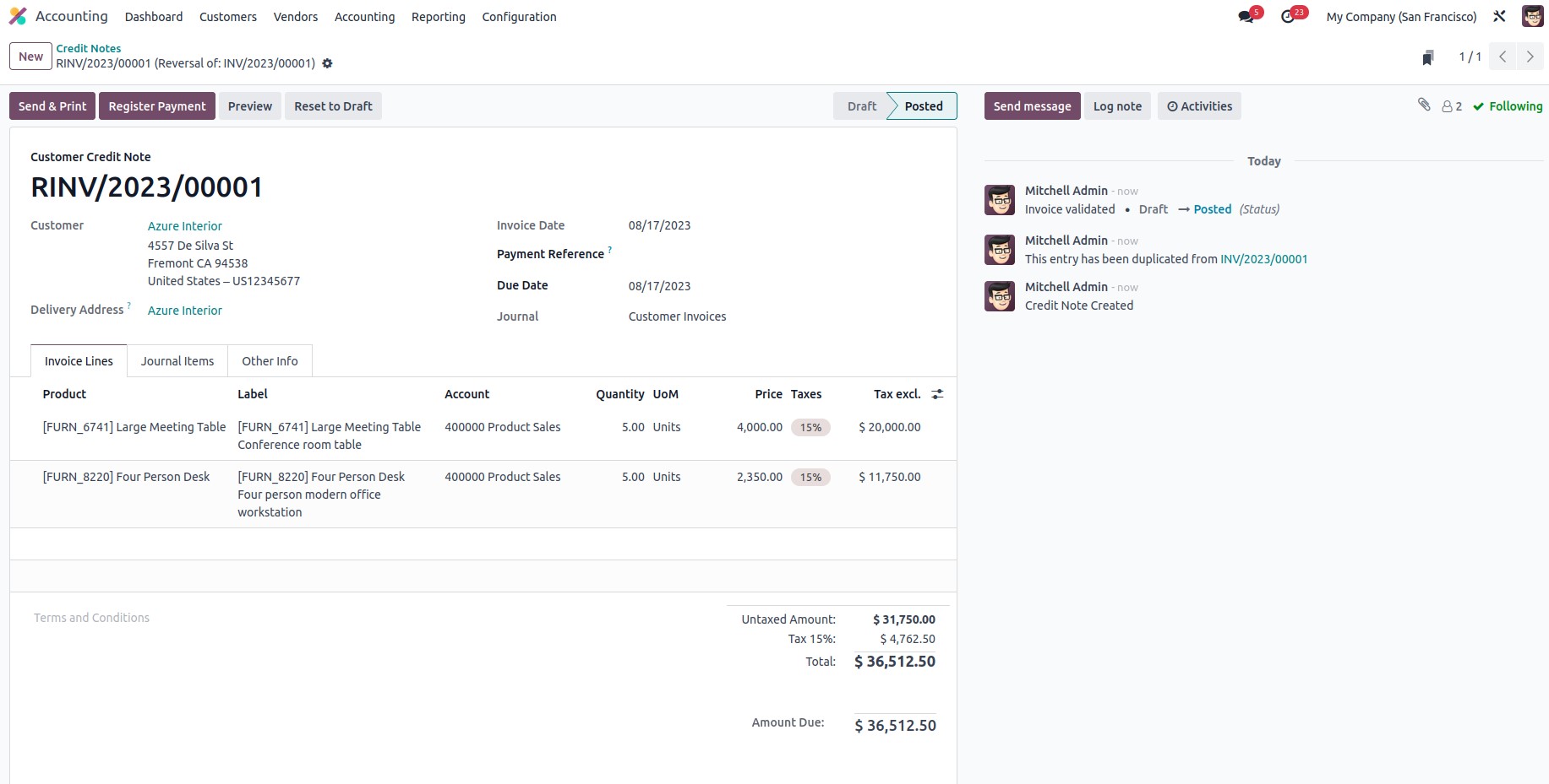 You will be familiar with the Credit Notes operations, how they function, and the management elements of them as of now. In the section that follows, we'll go into more depth about how the Odoo Accounting module manages client receipts.