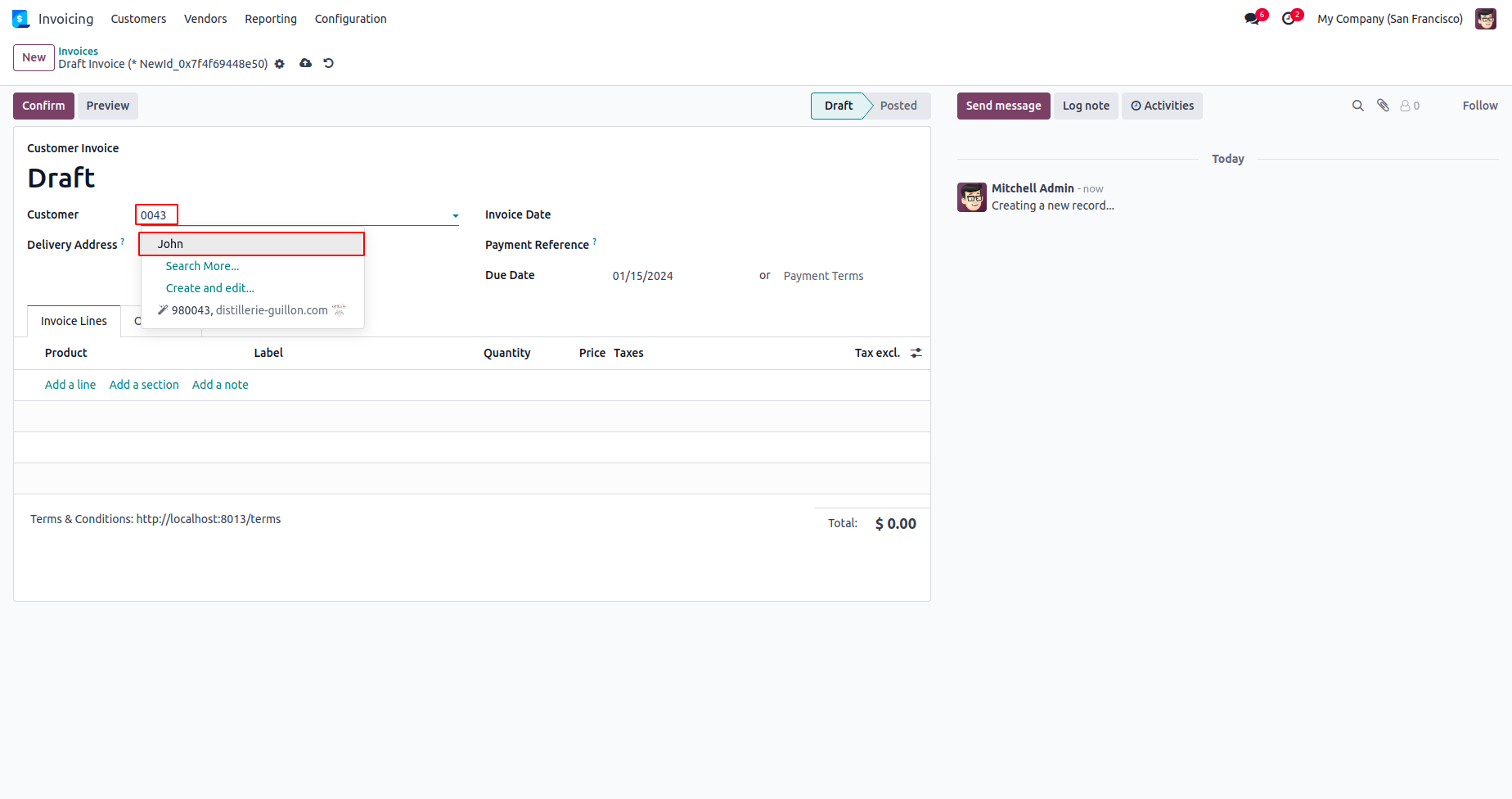Now create an invoice and search for the contact by typing this phone number.