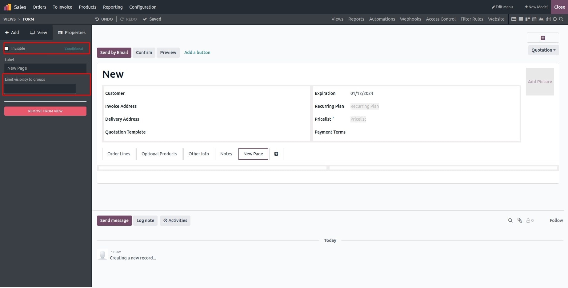 In the form view, tabs and columns are containers that can be used to arrange the various fields of a model. These elements enable a data display that is more user-friendly and well-organized. Related fields can be grouped together using tabs, and the fields within a tab can have their layout changed using columns. Users can quickly and easily access the information they need within the form view by making effective use of the tabs and columns.