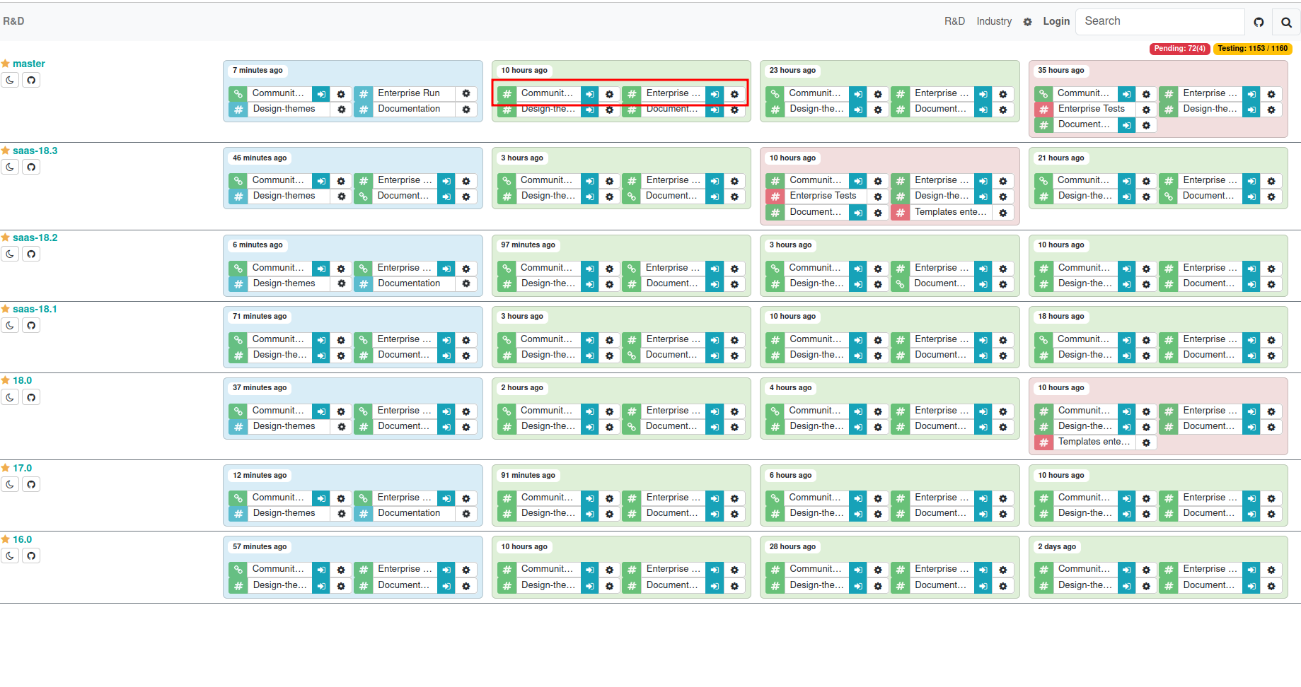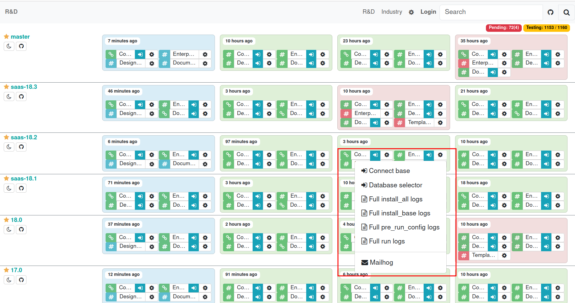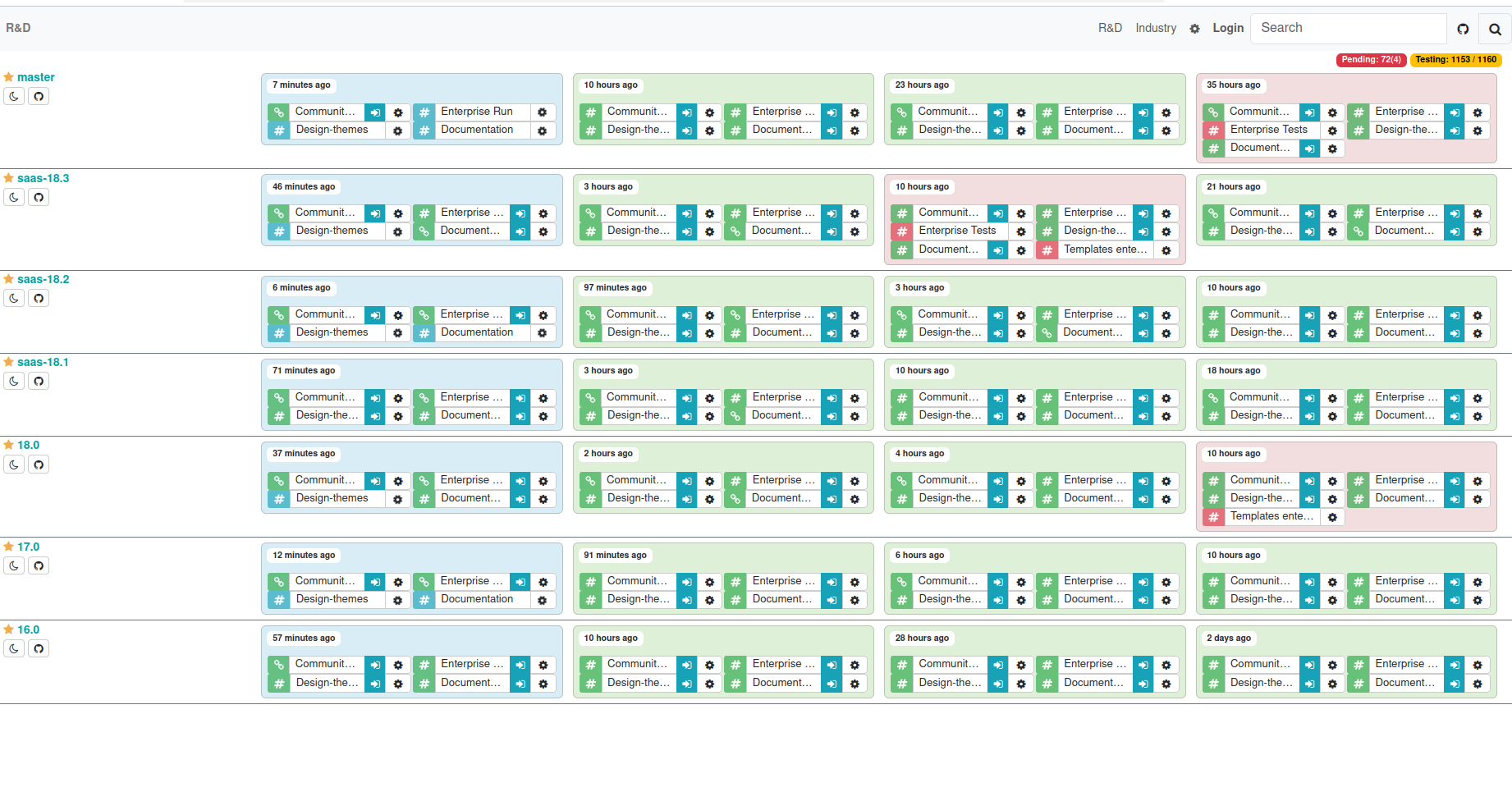 When you access the Odoo Runbot homepage, you’ll see a grid of