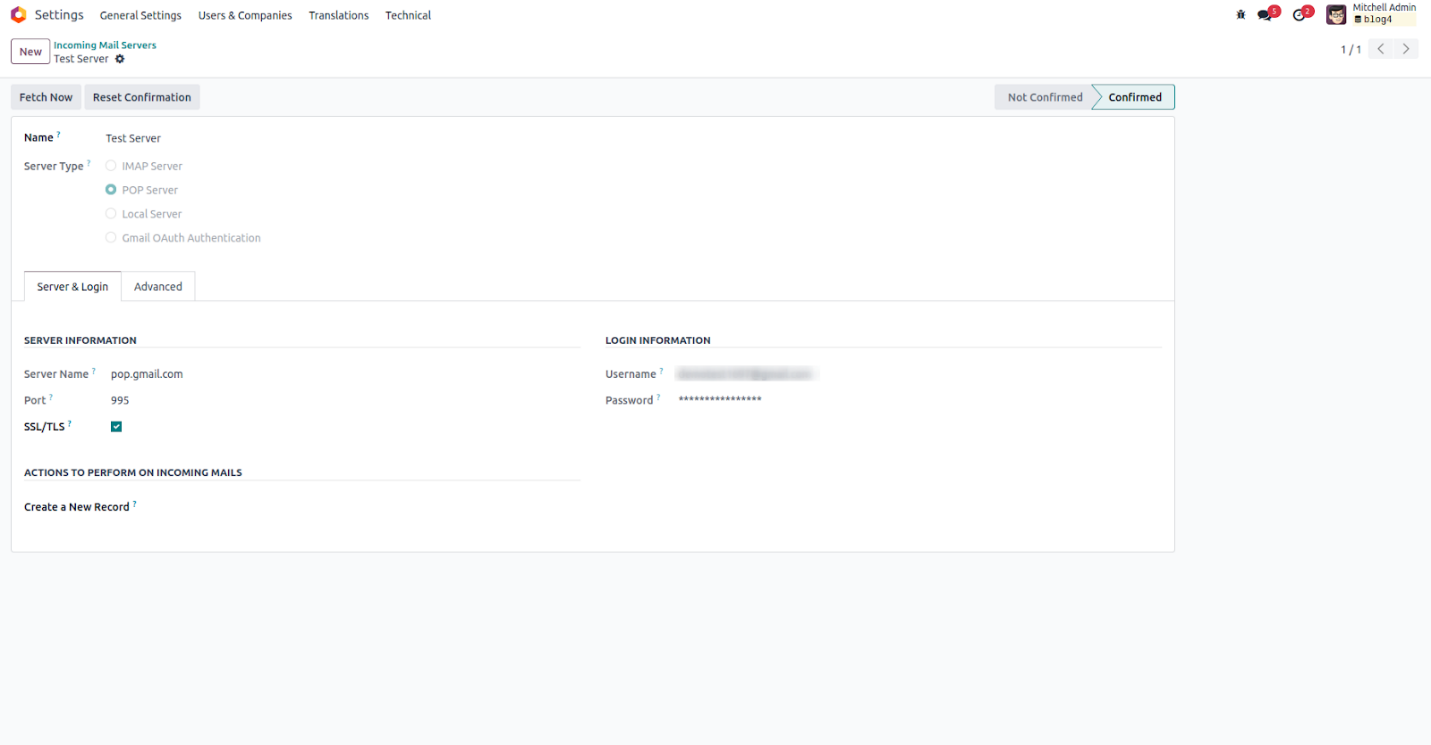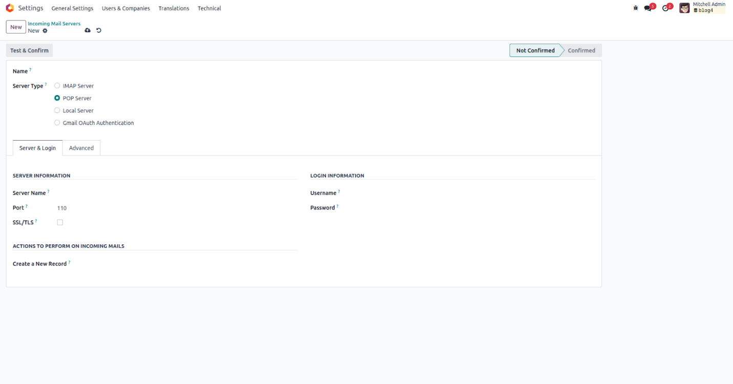 are hosted. Options include POP, IMAP, local server, and Gmail