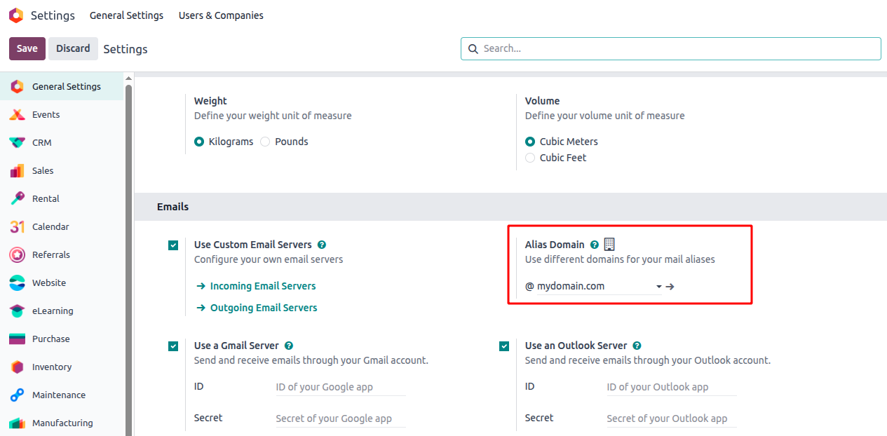 - Go to Settings > Technical > Email > Incoming Mail Servers
