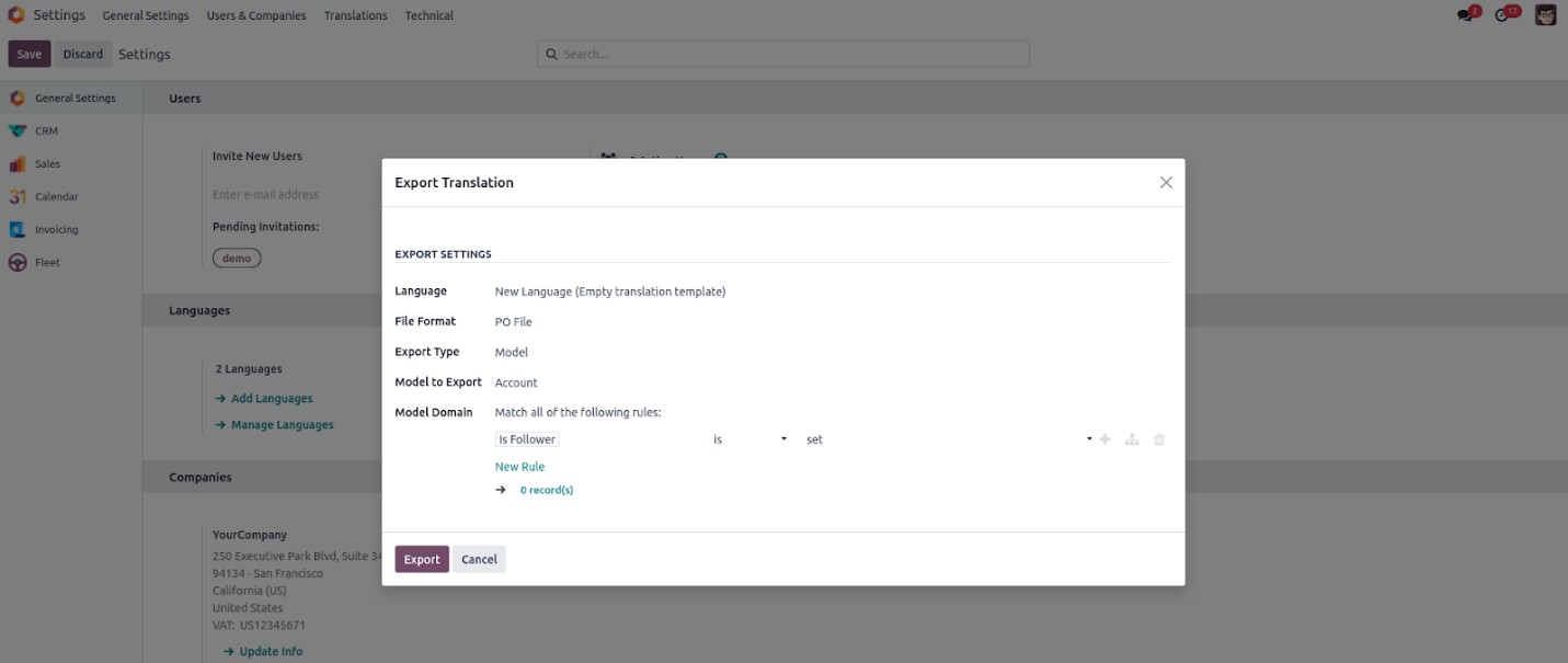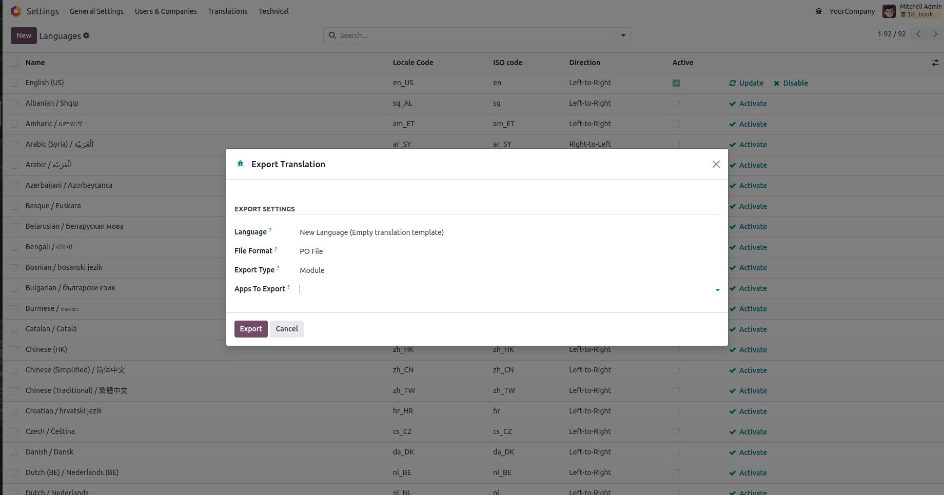available options such as CSV, PO, or TGZ archive. Additionally, you