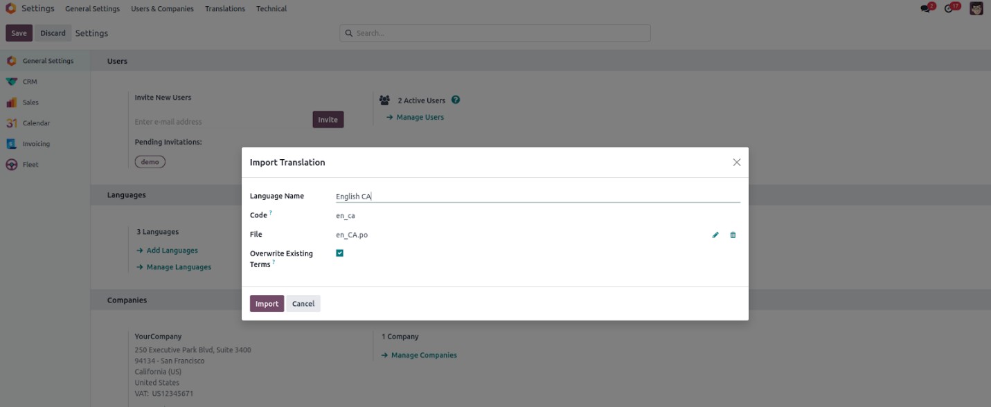 formats include .csv, .po, and .pot. There is also a checkbox to