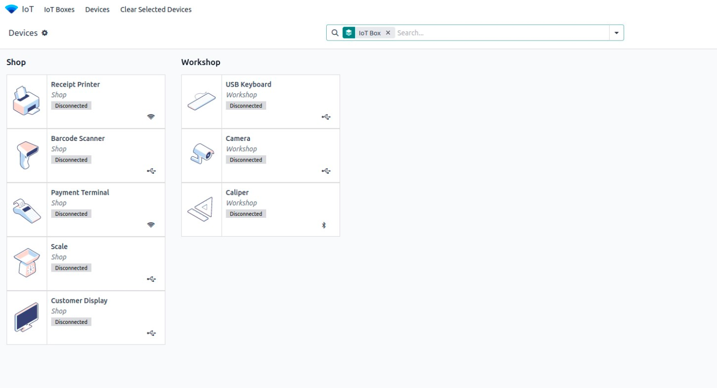 - You'll see a list of all devices, grouped by the IoT Box they're