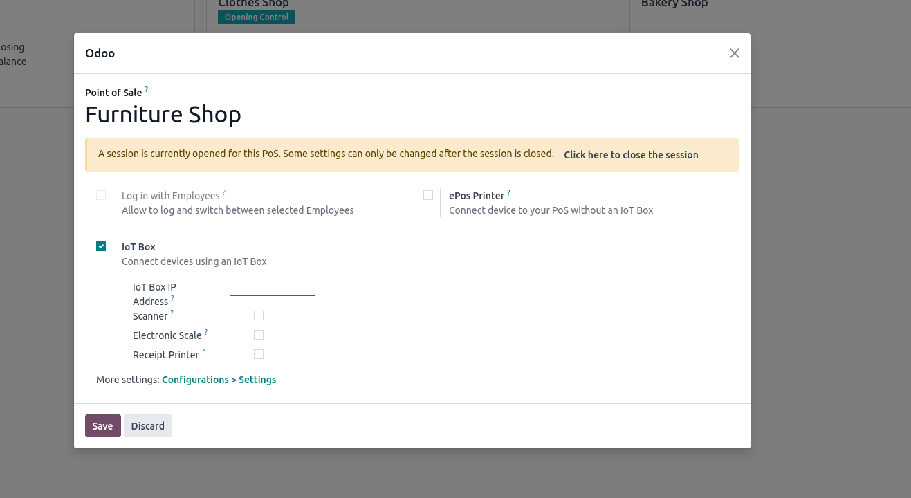the IoT Box option. Enabling it will display more configuration