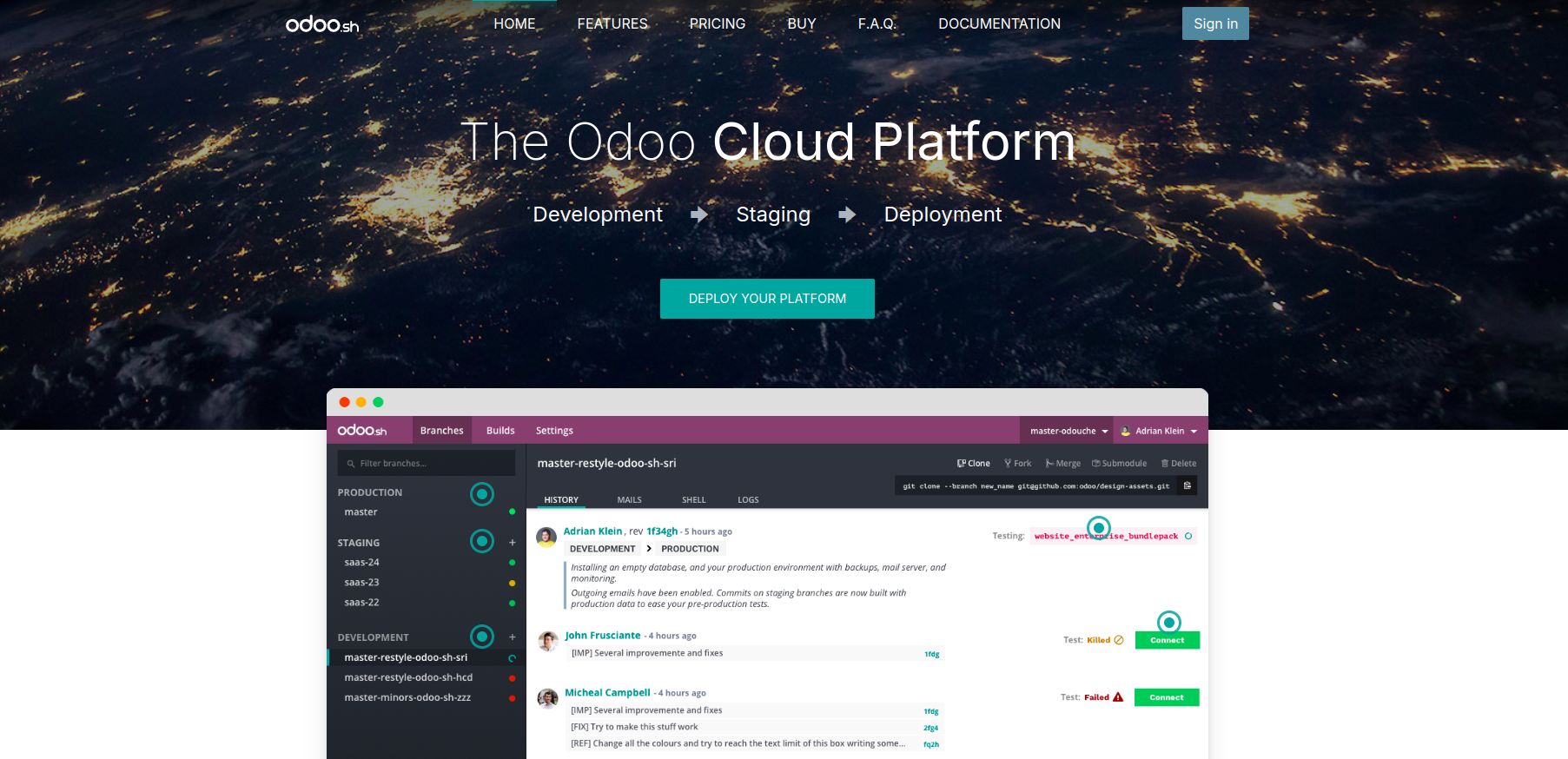 Odoo.sh provides integrated tools for developers and device