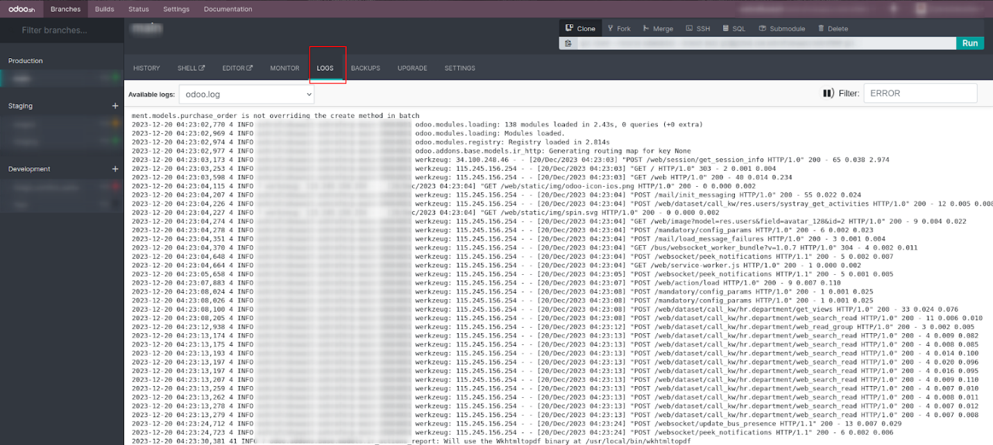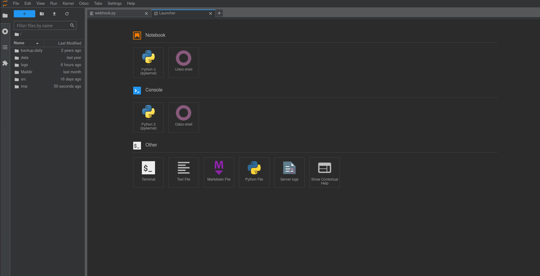 The Odoo source code is located at /home/odoo/src. To make changes,