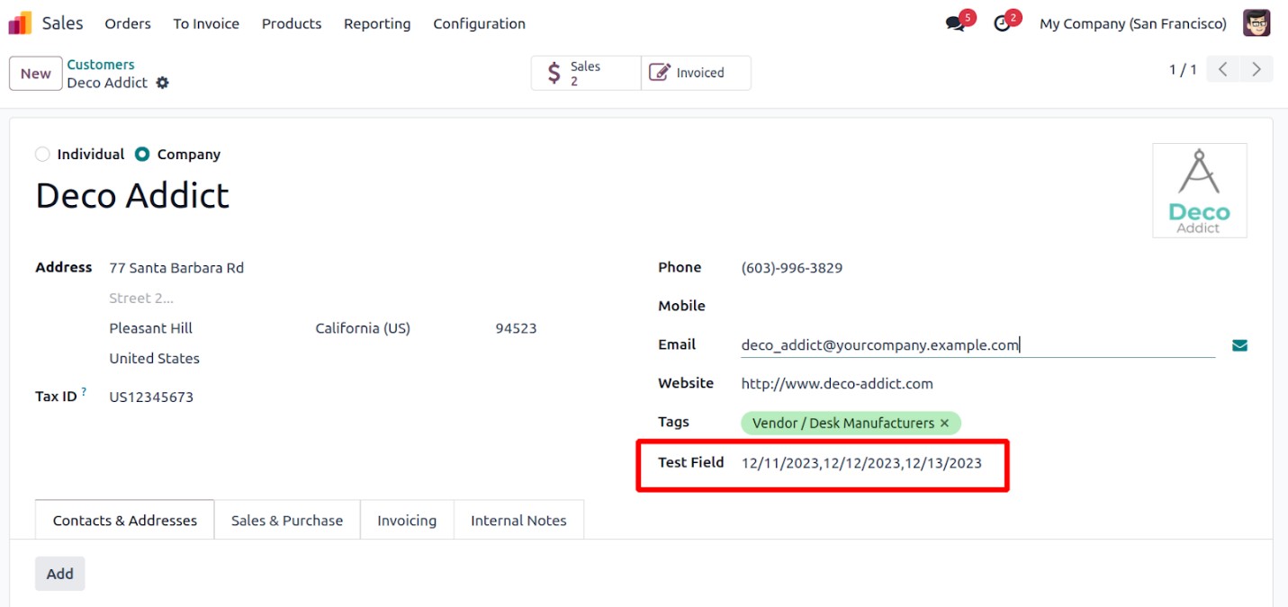 Now, the field is ready to support multiple date selections using the