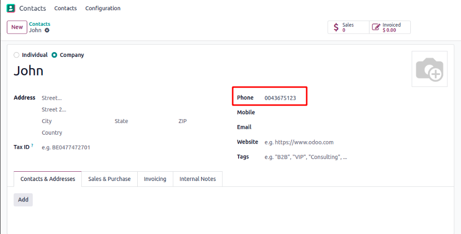 can search by phone number, and Odoo will intelligently suggest