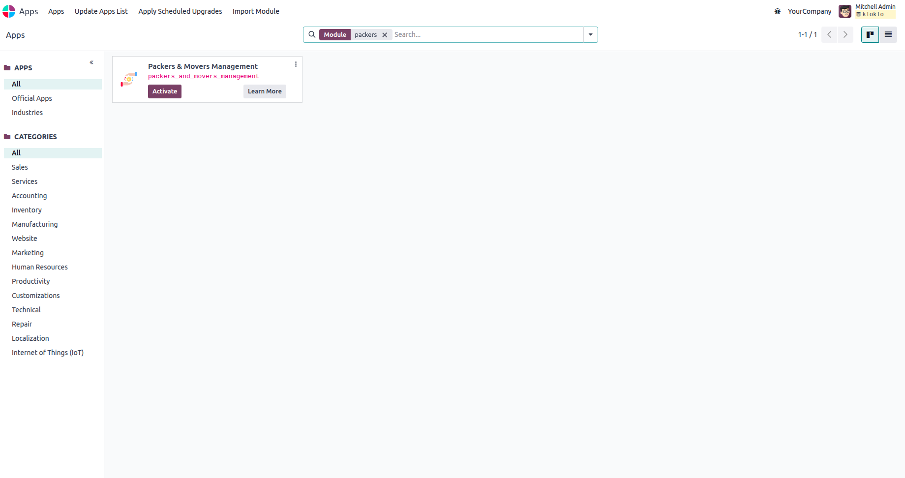 To install the recently added module, open Apps and switch to
