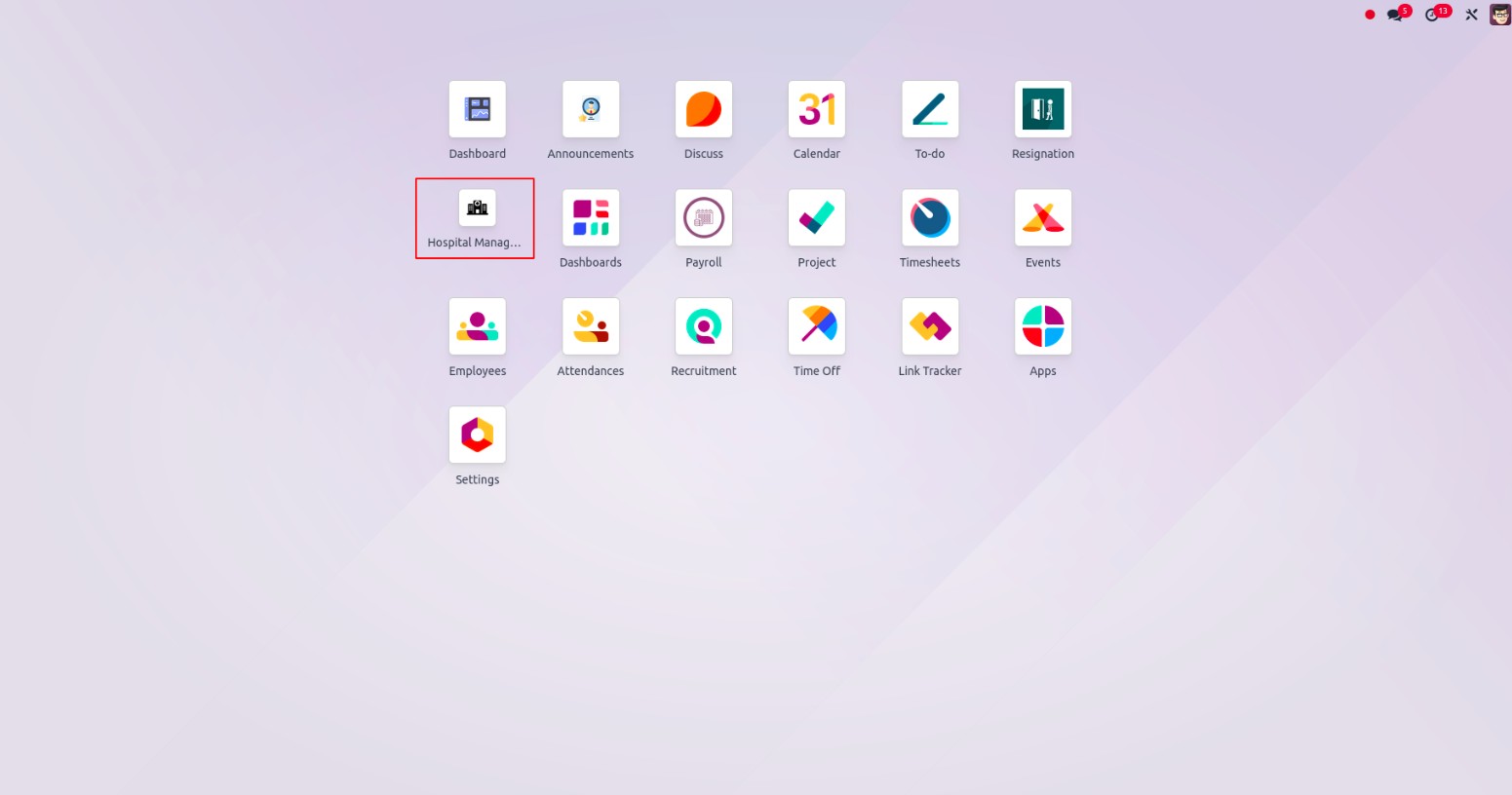 <menuitem id="hospital_menu_root" name="Hospital Management" sequence="25"