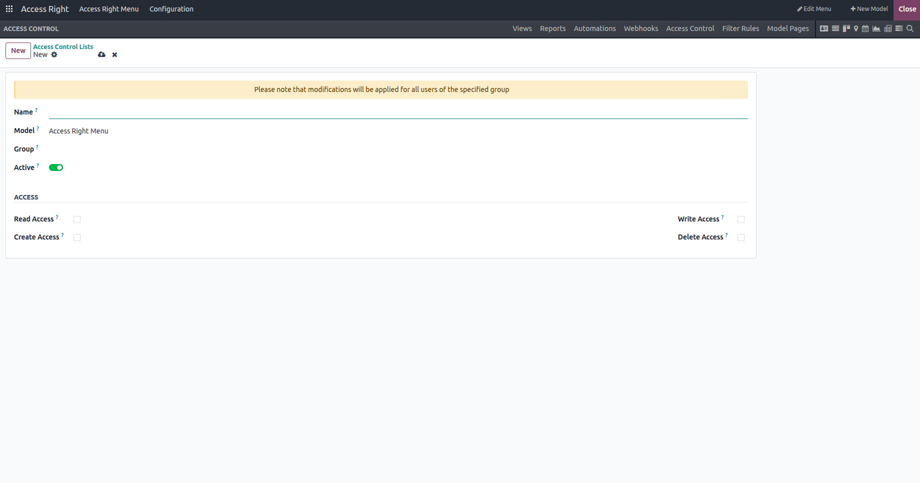 Odoo Studio continues to offer low-code customization capabilities, and access control remains a core feature. In version 18, some refinements improve how administrators define and manage access rights.
