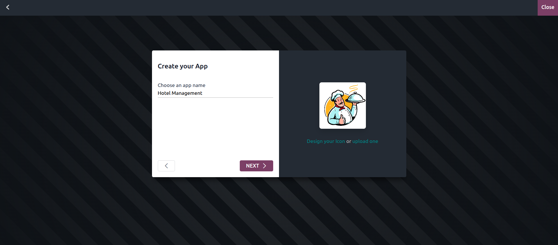 Clicking on the “New App” icon opens a dialog where you can name your custom application. You can also choose a default icon or upload your own for a more personalized look.