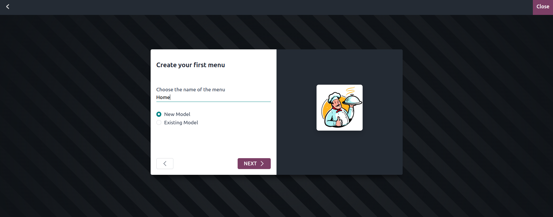 After naming your app, the next step is to define the menus it will contain. You can add menus to your new app, or attach them to an existing app (if doing so, you must select which app you're adding them to). This makes it easy to structure your app based on the types of operations or modules you want to include.