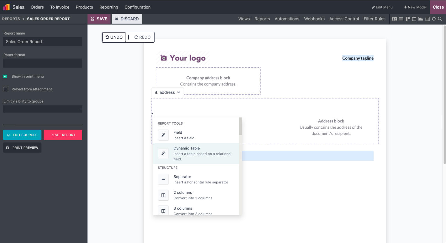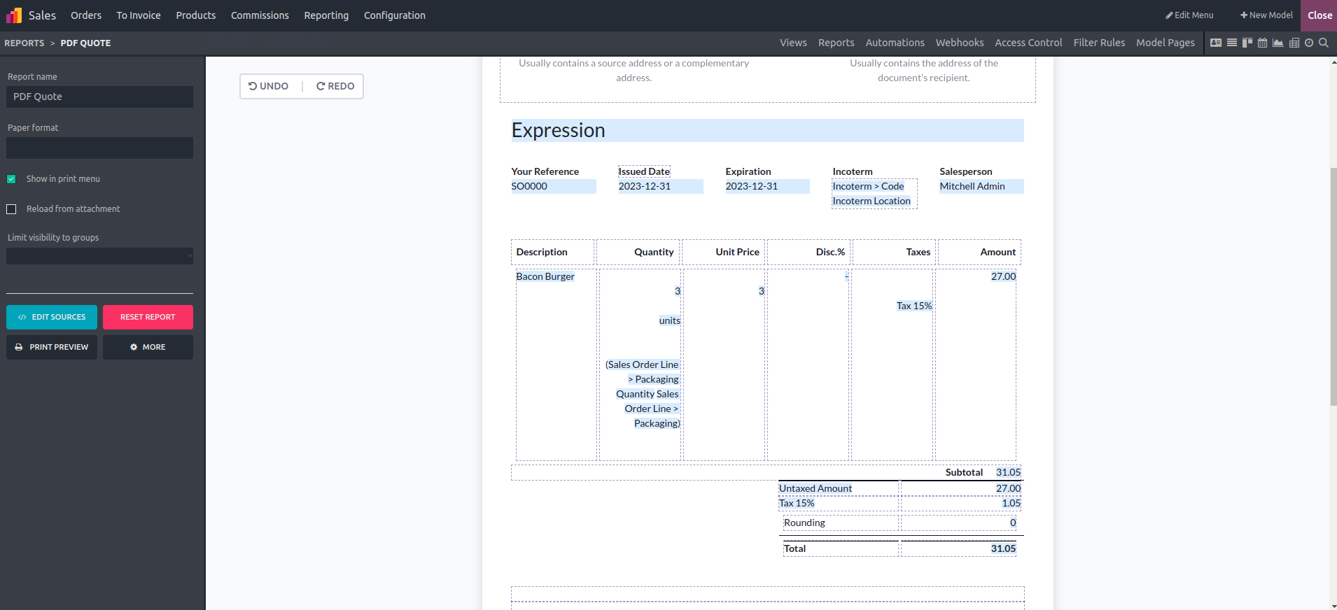 Odoo Studio provides an easy-to-use interface for creating and customizing various templates, which is especially useful for modifying report layouts to fit specific requirements. In this section, we’ll walk through the process of building a new template using the Studio module.