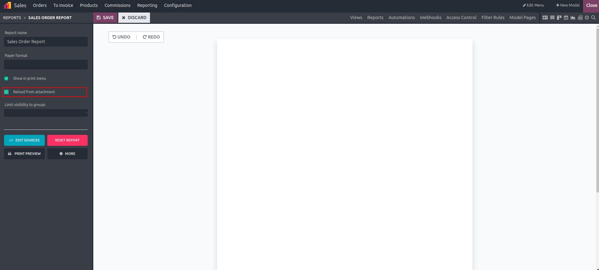 When Reload from Attachment is enabled, printing the report again with the same attachment name will display the previously saved version instead of generating a new one.