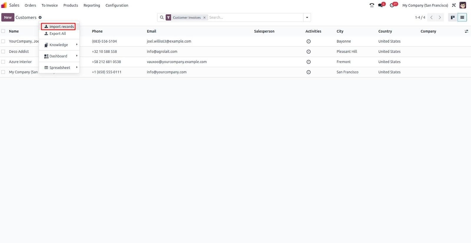 Click on 'Import Records' from the Actions menu.