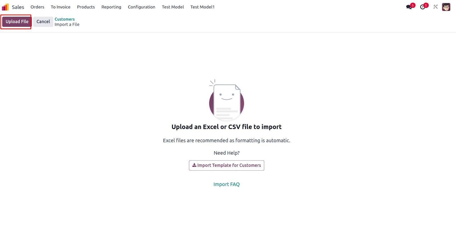 Once you select 'Import Records', a new form view will appear, allowing you to upload your import file.