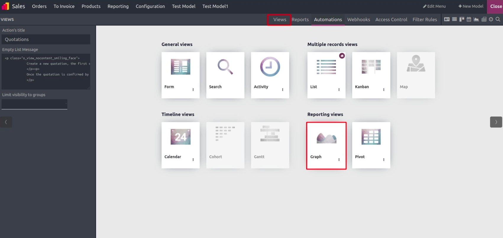 To create a new graph view for a model:
