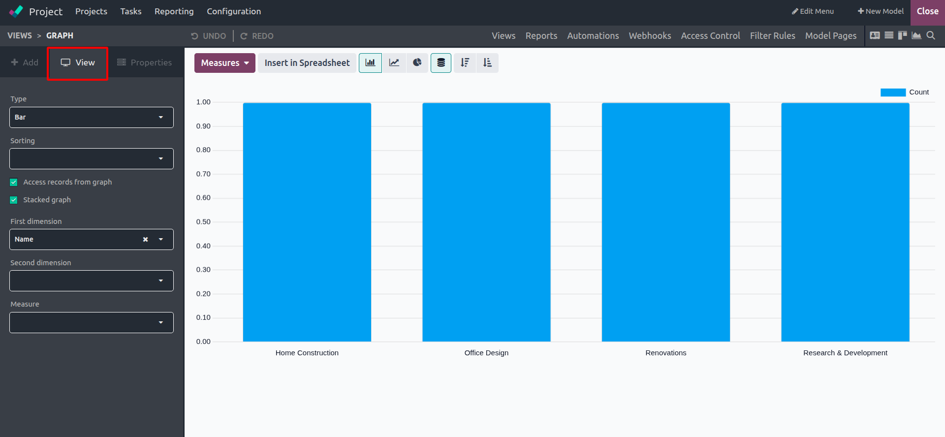 With Odoo Studio, creating and customizing graph views is easy and doesn’t require any technical background. You can build bar charts, pie charts, or line graphs to match the insights you want to highlight.