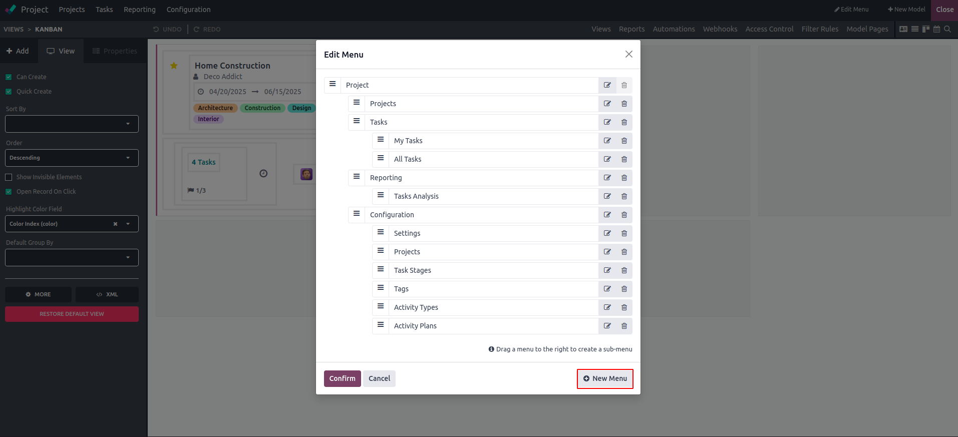 The Odoo 18 menu editor makes app menu customization an easy task, allowing users to add new menus with minimal effort. Its intuitive drag-and-drop feature further streamlines the process, providing a smooth and user-friendly experience.