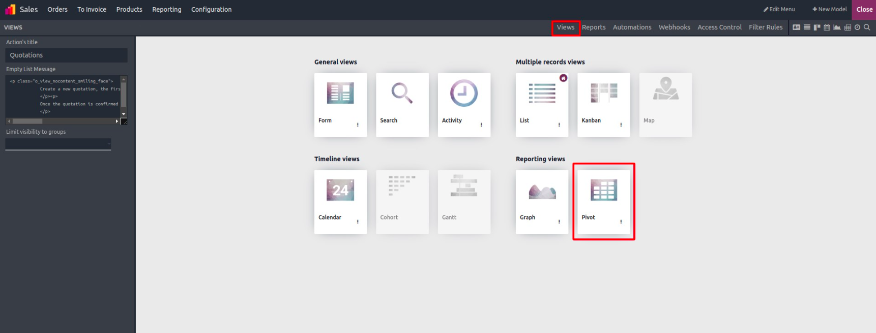 In the Views section, go to Reporting Views and enable the Pivot view.