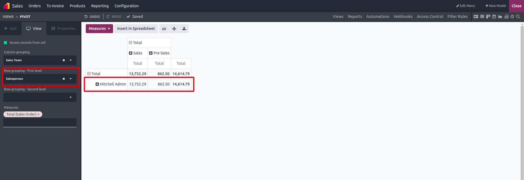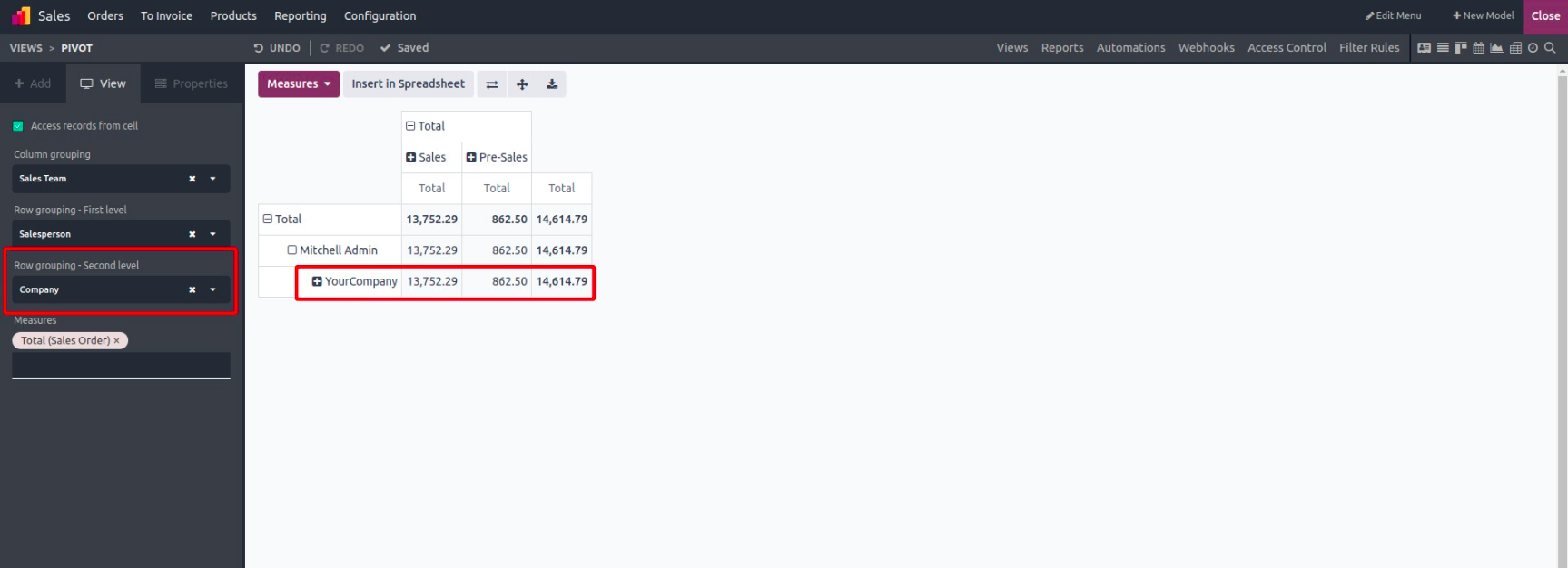 You can even apply nested row groupings by adding a second dimension. For example, first by region, then by salesperson, to drill down further.