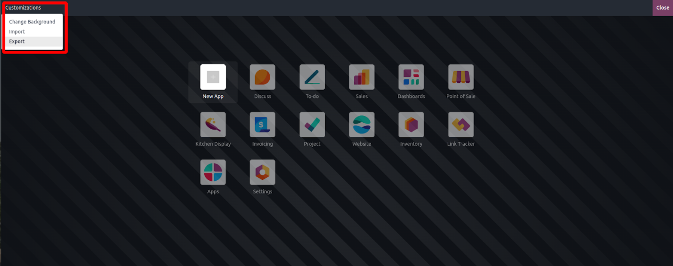 The Change Background feature allows users to personalize their interface by selecting a background image of their choice. The Import option enables users to load previously created custom modules into the system, while the Export function simplifies the process of saving and downloading current customizations for use elsewhere or as a backup.