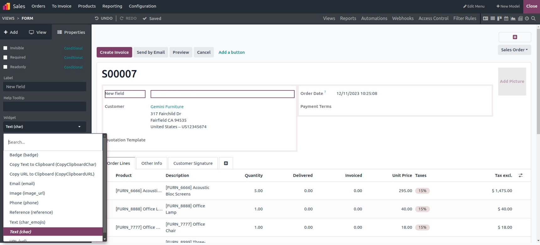 Let’s walk through the process of assigning a widget to a newly created field in Odoo 18 Studio.