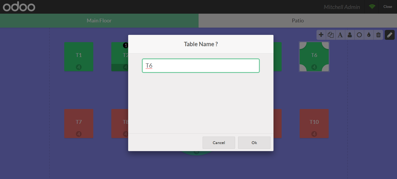 From your PoS interface, you can see the floor. Next you can customize the floor via adding tables. When you click on the pencil you will enter into edit mode, which will allow you to create tables, move them, modify them,