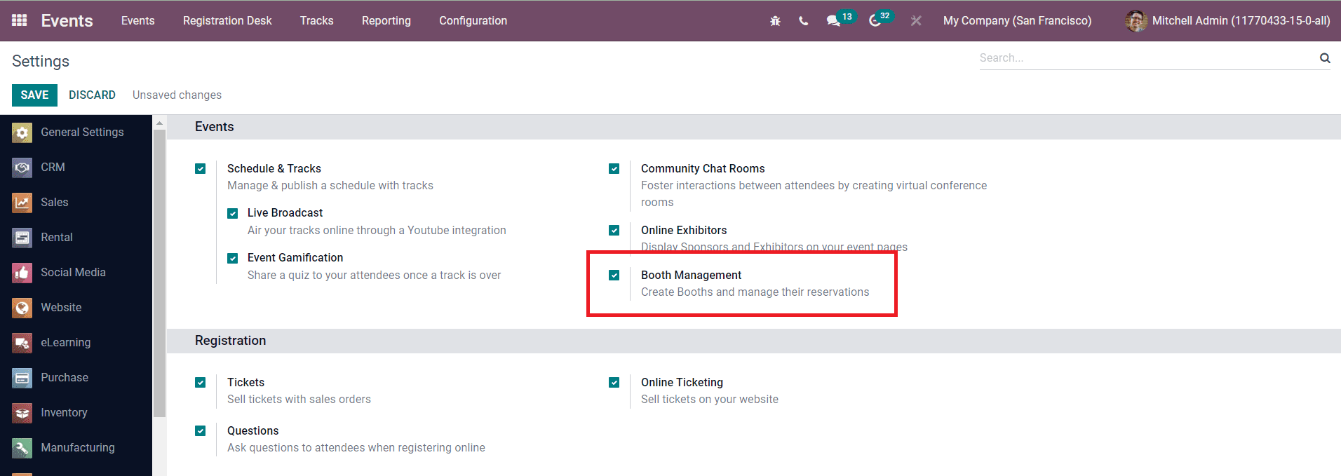 While conducting events, you can rent booths to other business firms to promote their product and services. To configure booths for an event, first, you have to enable the Booth Management option from the Settings module.