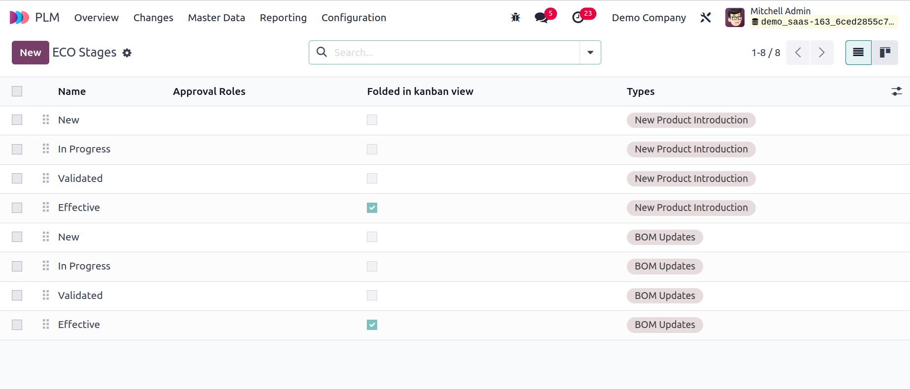 stage in ECO's Kanban view by turning on the option labeled Folded in Kanban