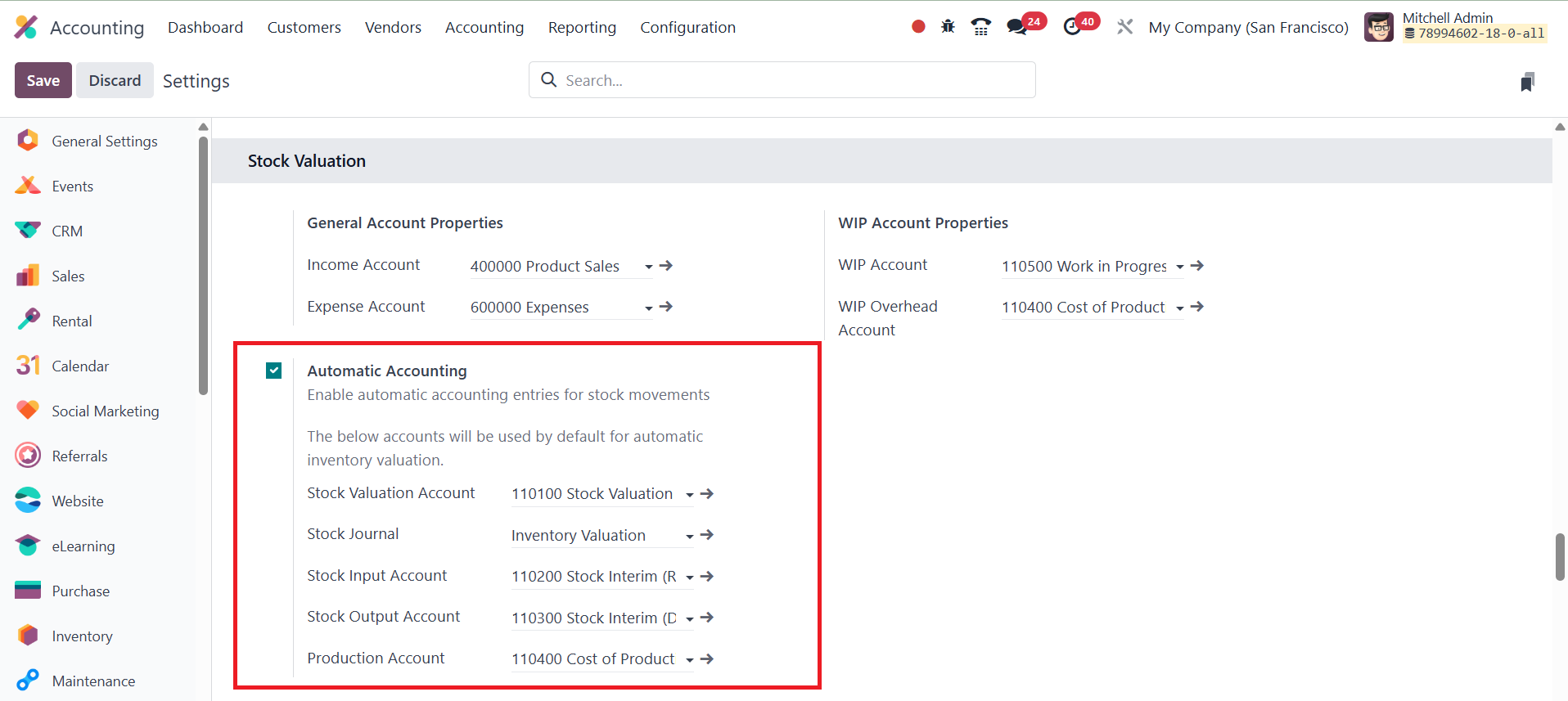 Accounting in the product's settings and activate automatic