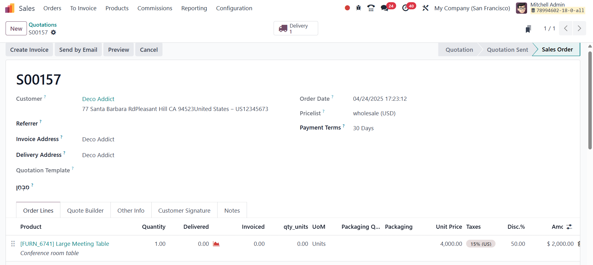 After confirming a sales order and validating the delivery, you can