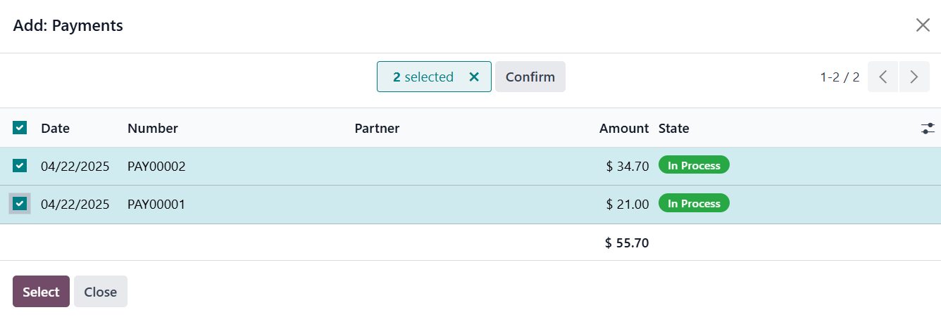 tab, where you can add individual payments to the batch by clicking