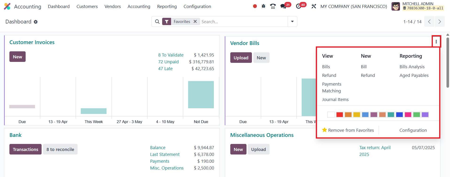 The Accounting Dashboard also facilitates vendor bill management,