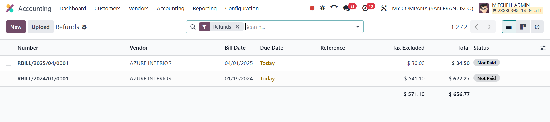 Vendor refunds are also handled smoothly in Odoo 18. From the Vendors
