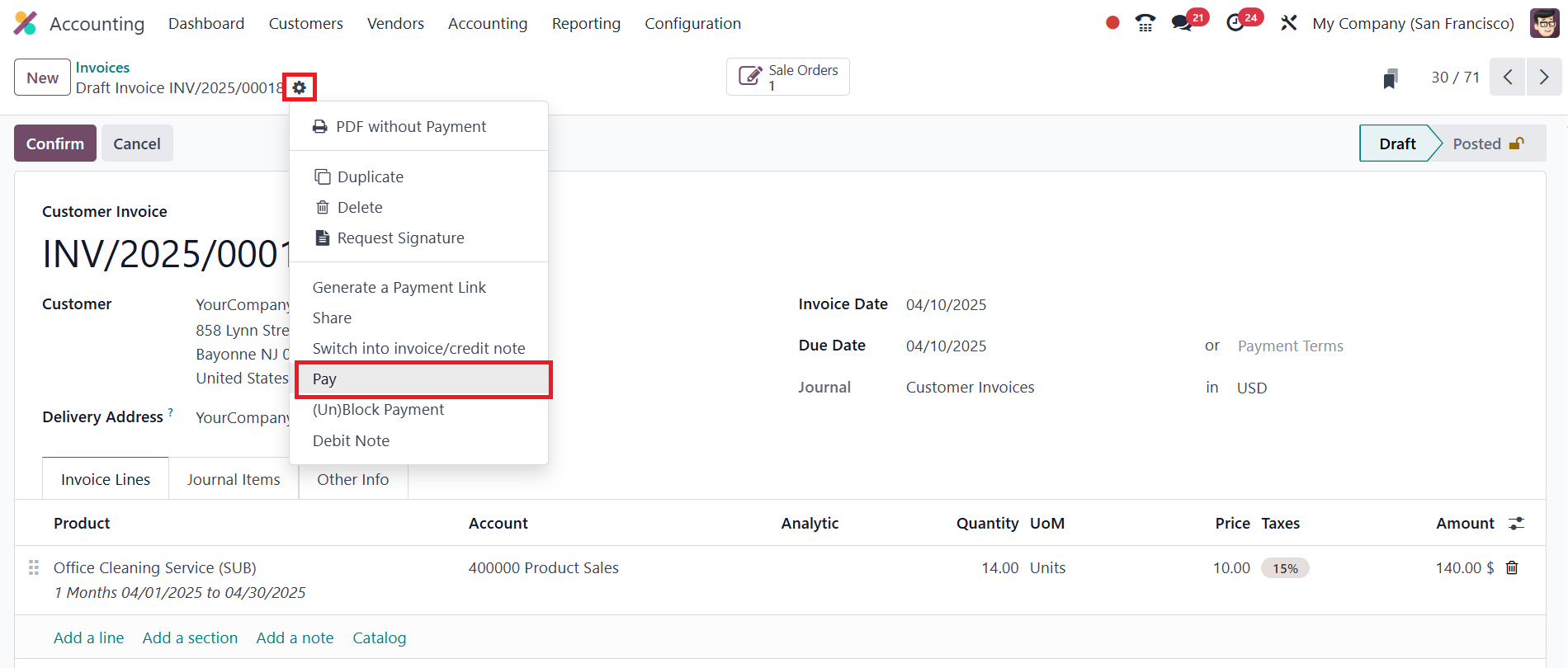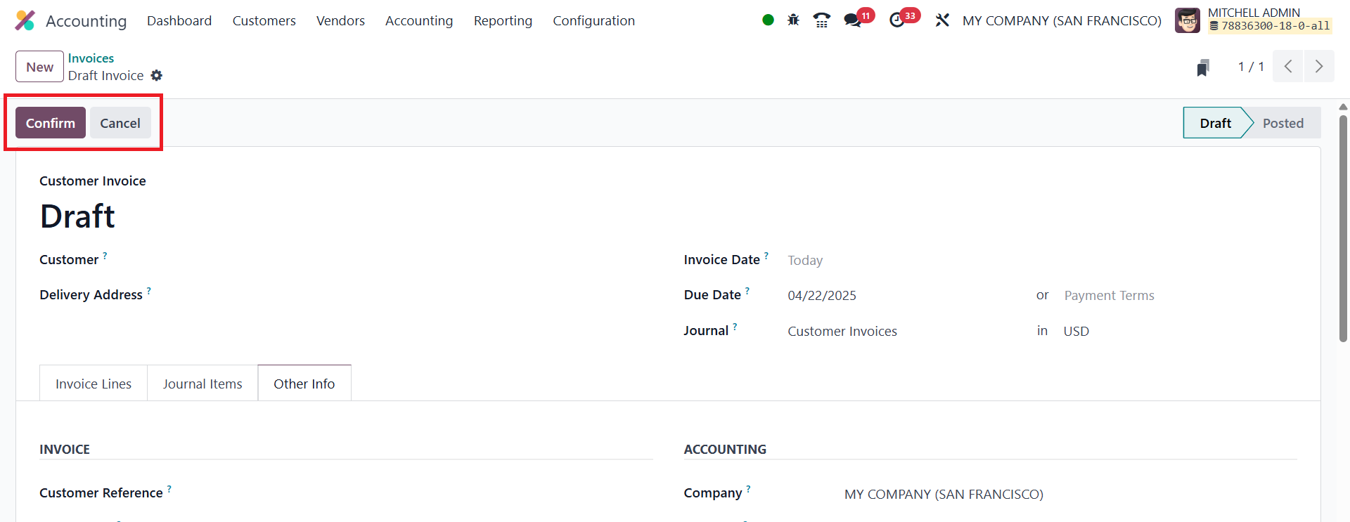 draft customer invoice, ready