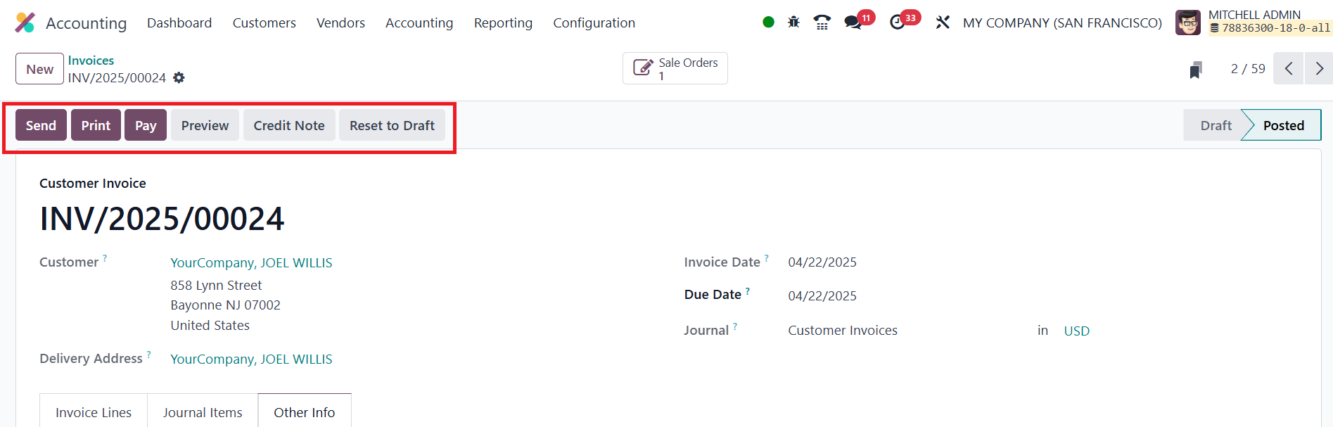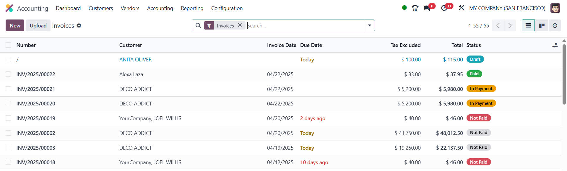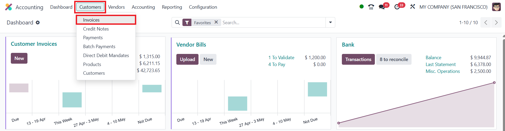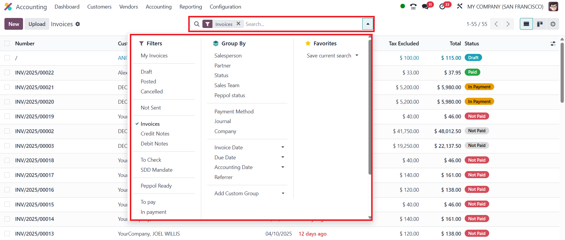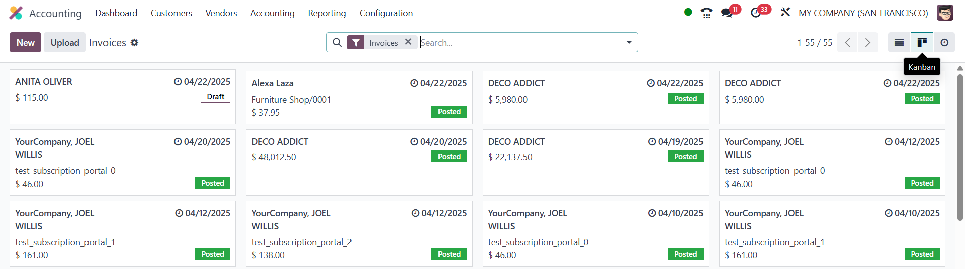 Invoices, Draft, Posted,