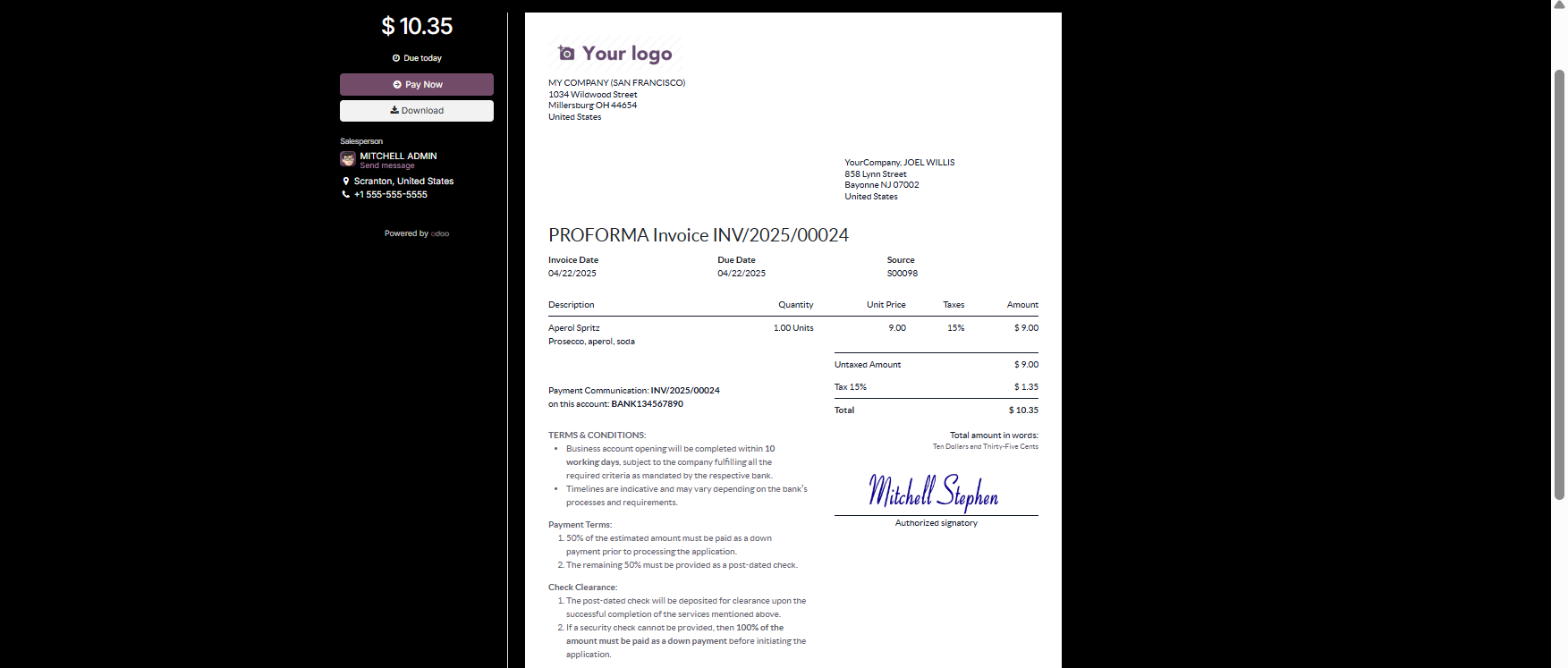 Payment Terms may auto-fill,