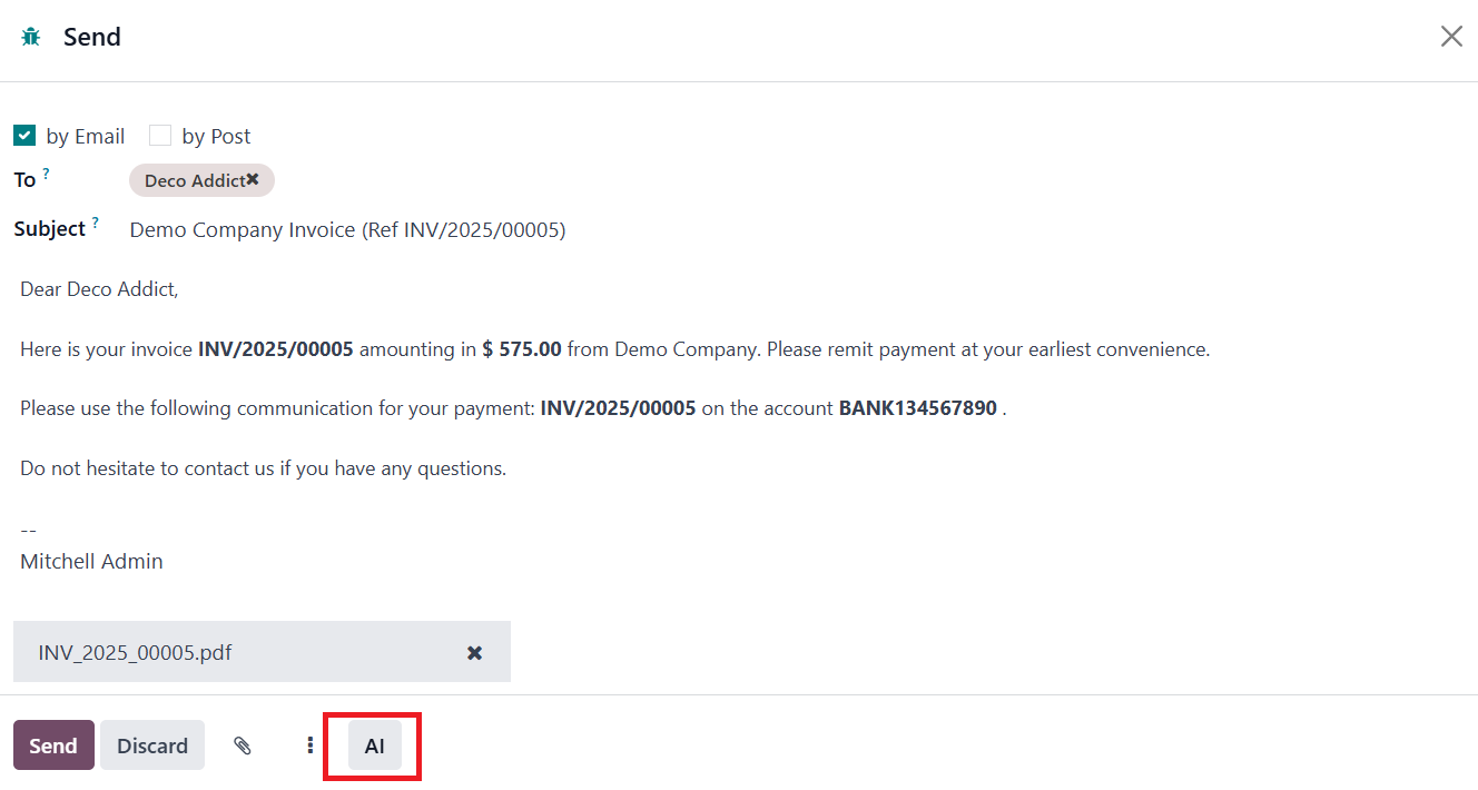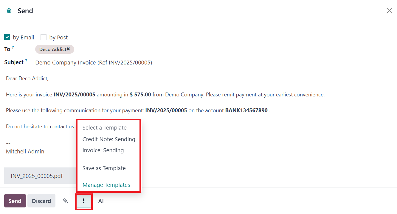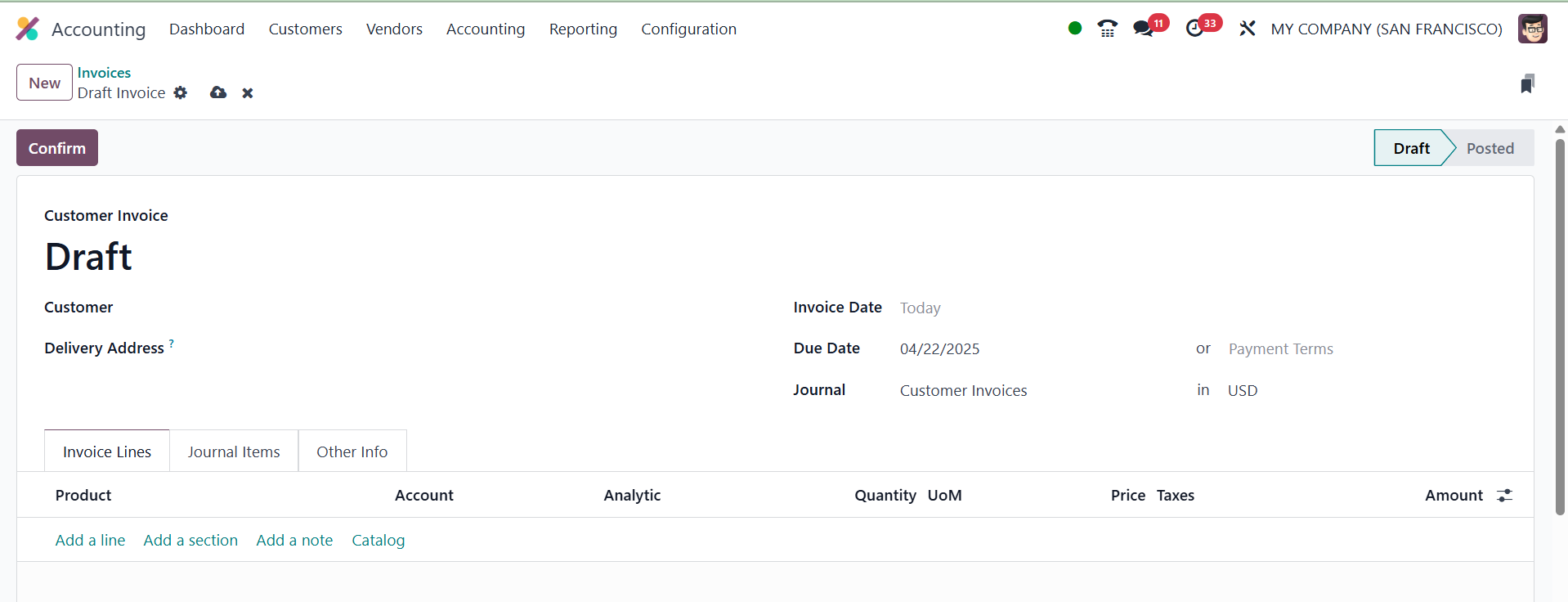 While drafting a new invoice,