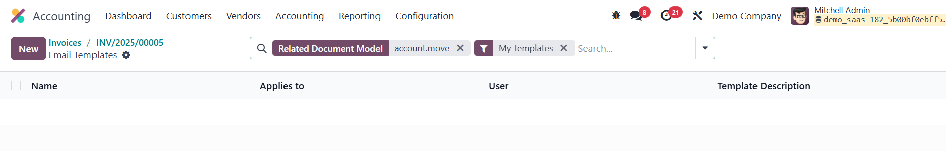volumes of invoices, Odoo 18